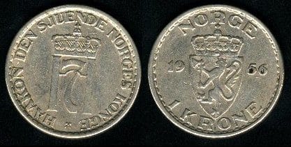 Cual sera el valor de 1 monedas de Noruega del año 1954