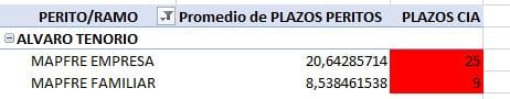 Necesito poner formato condicional para que dependiendo del resultado me marque verde o rojo las celdas de "Promedio Plazos", si el promedio plazos es menor que plazos cía tiene que salir verde si es al contrario (superior) en rojo.