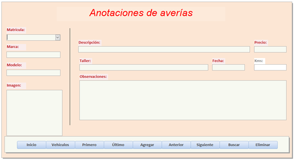 Resulta que tengo dos tablas VEHÍCULOS y AVERÍAS, cada una de ellas con su formulario. Lo que quiero hacer es en el formulario correspondiente a la tabla AVERÍAS, elegir la matrícula del vehículo mediante un cuadro combinado y que obtenga de la tabla VEHÍCULOS los campos MARCA, MODELO e IMAGEN.. El campo MATRICULA es texto y aparece en las dos tablas. Adjunto imagen del formulario AVERÍAS para aclarar un poco.