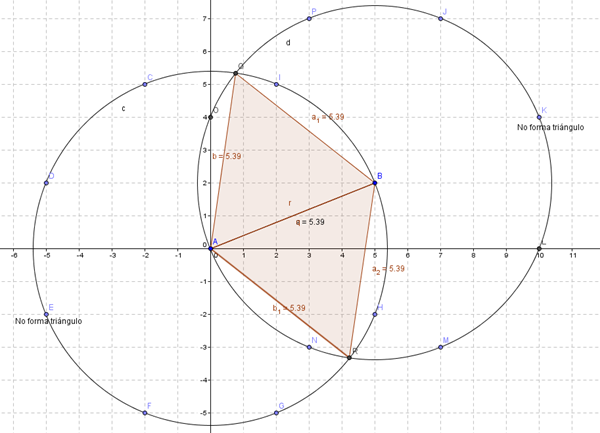entre estos puntos, es uno de los lados iguales del triángulo, determina todas las posibilidades de