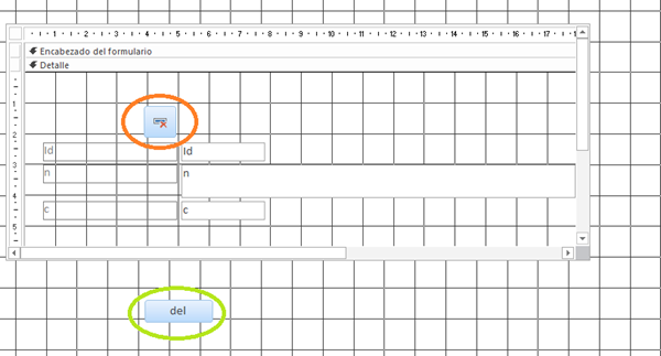Como puedo hacer para que al dar click en el botón "del" (encerrado en verde) automáticamente se ejecute la acción del botón dentro del subformulario( encerrado en rojo)