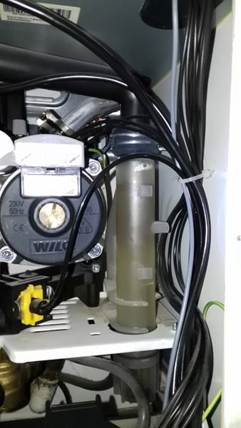 La pieza que se muestra en el vídeo, no es ningún filtro, ni tiene nada que ver, es solo un recipiente para recoger el agua condensada de la caldera. - David Cifuentes