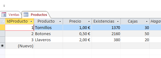 Tengo una aplicación de ventas con control de Stock, en las que uso estas tablas: