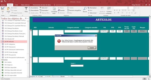 He conseguido arreglar varios de ellos, pero me he atrancado con un Error 438, que no soy capaz de encontrar dónde está el error. Este se muestra al pasar de un registro a otro.