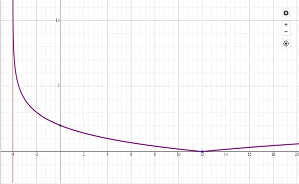 La función es la siguiente: f(X) = |log2 (X+1) - 4|