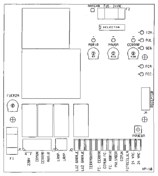 Tengo la necesidad de instalar dos fotocelulas "px-beam (emisor-espejo)" en mi cuadro de maniobra "norton hispano vp10.2" de la puerta de mi garaje pero antes de poder conexionar nada, por accidente con un destornillador, he hecho un puente, que más adelante describo y pienso que o se ha fundido la placa por un cortocircuito o se ha desconfigurado.