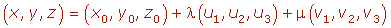 A) (x,y,z) =(0,0,2)+h(2,4,4)+u(2,6,7)
