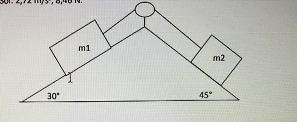 ..-m1g sen 30 - mu1 m1g cos 30 + .m2 g sen 45 - mu2 m2 g cos 45 = ( m2+m2) a