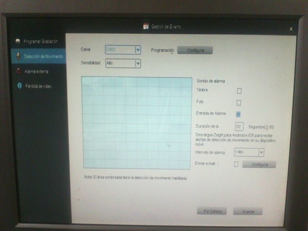 Enlace a las especificaciones, el cual quiero colocarle una sirena de 12 voltios que suene cuando detecte movimiento, atrás del equipo tiene un puerto para alarma