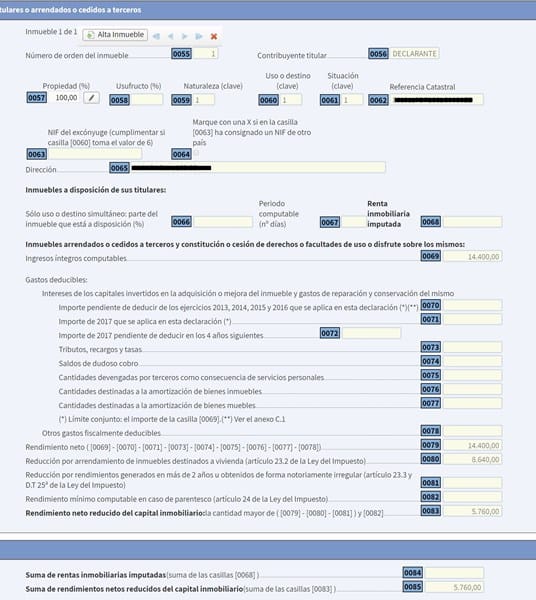 Por primera vez voy a realizar la declaración de renta como arrendatario de mi vivienda habitual, y pese a que he leído que podría deducirme el IBI no me queda del todo claro si lo estoy haciendo correctamente o si tengo que informar algún dato adicional. Al acceder al borrador de la renta 2017 voy al apartado "Relación de bienes inmuebles y rentas derivadas de los inmuebles a disposición de sus titulares o arrendados o cedidos a terceros" y en dicho apartado doy de alta el inmueble, informo la referencia catastral, domicilio e informo el total neto anual que percibo de los alquileres del ejercicio anterior 1200€ x 12 meses= 14.400€.