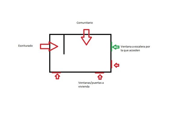 Este hecho me parece inaceptable, ya que entiendo que soy un propietario de buena fe y que, aunque tengo que facilitar el acceso al patio (en su parte comunitaria), no pueden acceder sin mi permiso ya que su uso es privativo y además se confunde la superficie comunitaria con la privada. Además la reja ha quedado abierta con posible acceso de extraños al patio y consecuentemente, a mi vivienda.