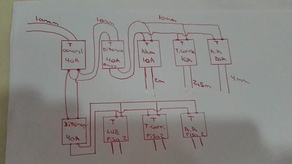 -Tal cual!. Y la línea que lleva al piso de arriba, la podes llevar con 6 mm2, que va a ser más que suficiente. La carga más grande esta siempre en la planta baja: lavadero, cocina, garaje, etc.