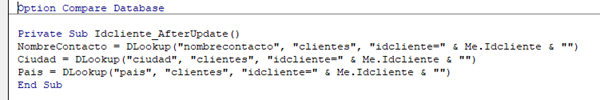 Así, cuando "abras" el combinado verás el nombre pero lo que realmente "guardas" es el Idcliente. Luego si quieres que te "rellene" algún datos más siempre puedes usar la función Dlookup. De todas formas, teniendo el Idcliente, en cualquier lugar puedes tener el resto de datos.