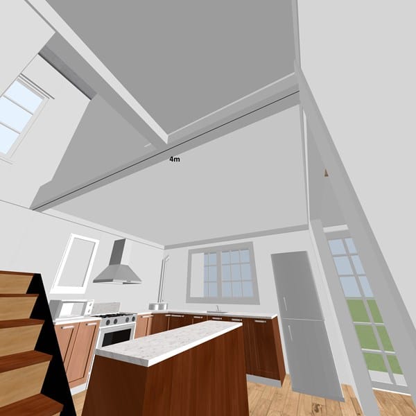 Quisiera construir un muro divisorio sobre una losa de viguetas de 16cm + 4cm capa de compresión,. El problema es que este iría paralelo a las viguetas (con una luz de 4m) y en voladizo, por lo que la carga no se repartiría tan bien. ¿Lo puede soportar en si mismo? ¿O debo agregar una viga por debazo de esta (como se ve en la imagen)?