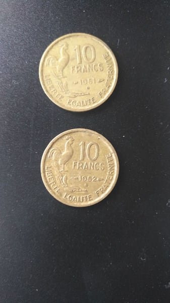 Me gustaria saber el valor que tienen estas dos monedas de 10 francs de los años 1951 y 1952.