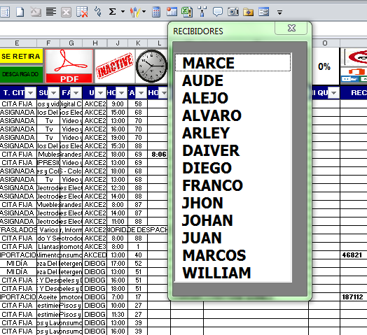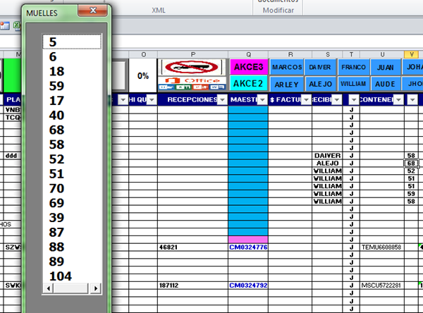 El primer formulario (RECIBIDORES) lo programe para que cuando termine llame al siguiente formulario y salte unas celdas y coloque los datos del segundo formulario(muelles). Pero cuando salta al segundo formulario en ocasiones SI hace la instrucción y aveces NO, ¿qué puede estar ocurriendo en segundo formulario? Copio código del segundo formulario, donde genera error en ocaciones¡