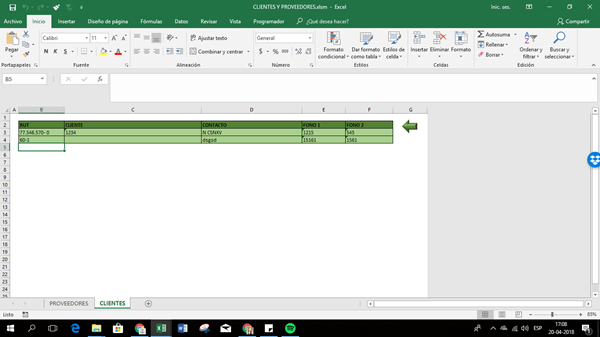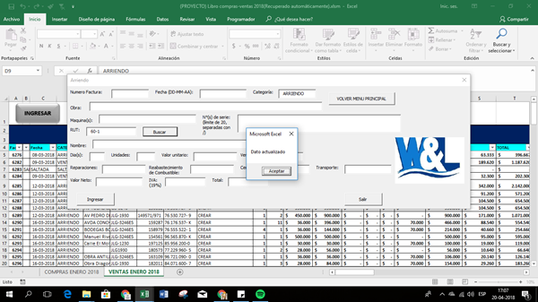 Private Sub rut_arriendo_Change() Workbooks.Open Filename:="C:\Users\diana\Dropbox\PROYECTO\CLIENTES Y PROVEEDORES.xlsm" Sheets("CLIENTES").Select Range("a3").Select Do While ActiveCell <> "" If ActiveCell = rut_arriendo Then Selection.Offset(0, 1) = nombre_arriendo GoTo termino End If Loop termino: End Sub