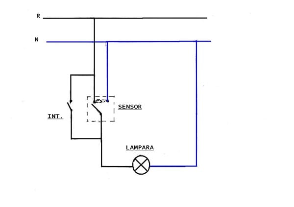 Necesitaría saber si alguien me puede pasar un esquema de conexión para conectar un sensor de movimiento para un pasillo, de manera que necesito que las luces se enciendan con el sensor, y cuando lo necesite, se queden fijas con el interruptor, independientemente si el sensor se pueda activar si hay movimiento.