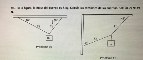 11.- En la figura, la masa del cuerpo es 300 kg. Calcule las tensiones de las cuerdas. Sol: 9837,43 N;