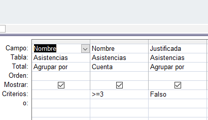 Tengo una tabla de inasistencia, deseo elaborar una consulta de los estudiantes que tienen más de 3 inasistencias injustificadas