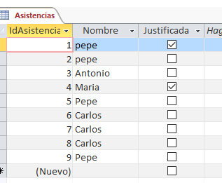 En un formulario de Control de asistencia cargo diariamente la inasistencia de los estudiantes. La tabla se llama Tbl_CONTROL DE ASISTENCIA.