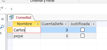 ¿Cuándo están justificadas se registra en el campo Justificada? Sí/No mediante un botón de opción en VERDADERO; la injustificada, en FALSO (Sin seleccionar).