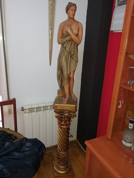 Quisiera saber el valor de la peana en madera pilicromada en oro viejo y la escultura en conjunto o por separado