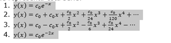 Determine la solución general usando series de potencias de la ecuación diferencial y’+y=0 e identifique la función elemental que representa esta serie: