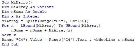 La presente es para saber si se puede sumar dentro de una misma celda en Excel, como muestro en el ejemplo. Como pueden observar en la celda A1 se encuentran los números 10 10 20 y 30, que sumados todos da como resultado 70, ¿existe alguna macro o forma de hacer que me dicho resultado?. Quedo siempre atento a sus amables respuestas