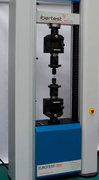 La foto que te adjunto, muestra la "Maquina de tracción" y la "Probeta" es esa cosa chiquitita que parece como un pelo que se ve al medio de las dos mordazas grandes: