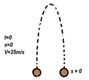 Una piedra es lanzada verticalmente hacia arriba desde el suelo, con una velocidad inicial de 25 m/s (ver figura) Considere como aceleración de la gravedad g=10 m/〖seg〗^2.
