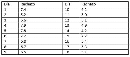 El director de una universidad se ha percatado que el porcentaje de alumnos aceptados varía año con año. Se desea determinar si esta variación se debe al azar o a un factor sistemático. La siguiente tabla presenta datos de 18 procesos de ingreso a la universidad. Utiliza un nivel de significancia de α=0.05