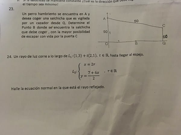 La recta L1 que representa al rayo te la dan en forma vectorial