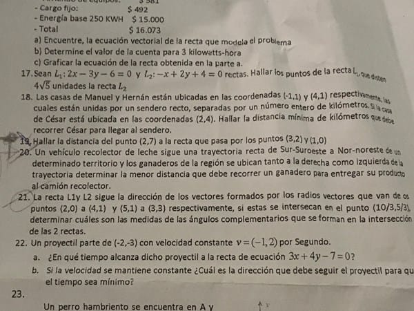 Hallar la mínima distancia que se deberá recorren en problema sobre la ecuación de la recta.