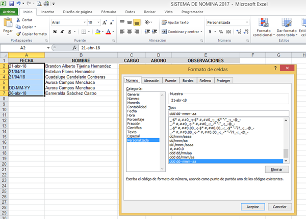 Tengo una hoja de excel (2010) donde inserto varios datos, mi problema es que uno de los datos es fecha y al insertarlo en la celda no lo pasa en formato de fecha.