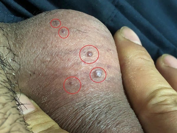 Buenos días, soy un hombre de 34 años y necesitaría que algún experto puede arrojar algo de luz a mi situación, tal como se muestra en las fotos, tengo esos granos (están señalados en círculos rojos) de textura liso al tocarlo, color de la piel de los testiculas y algo transaprente y no duro desde hace ya unos años, no le di importancia porque no crece ni aumenta en números, tampoco produce ninguna molestia y se comporta como la piel de los testículos, cuando se contrae la piel por el frio, los granos se ponen duro como la piel de los testículos y cuando se relaja la piel de los testículos, los granos se relaja y se pone blando también. Esos 4-5 granos solo esta en la parte izquierda del testículo, la piel de la parte derecha del testículo no presenta ningún grano o bulto,, esta limpio.