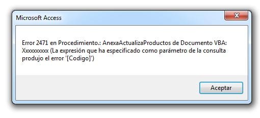 MsgBox "Error " & Err.Number & " en Procedimiento.: AnexaActualizaProductos de Documento VBA: Xxxxxxxxxx (" & Err.Description & ")"