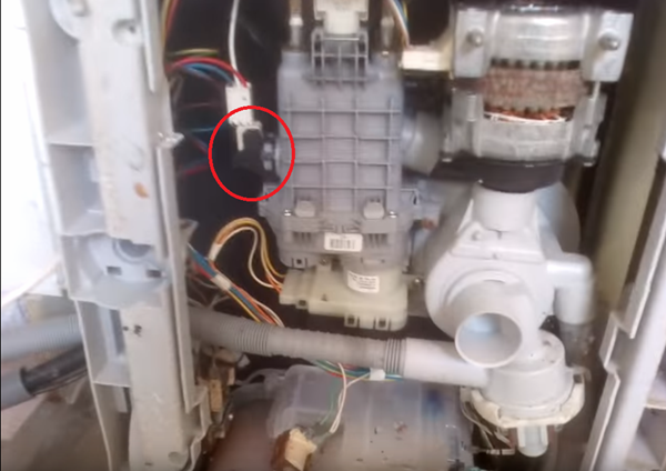 Puedes coger un cable y conectarlo a las 2 patitas de ese interruptor, lo sacas hacia afuera y pones un tester en continuidad. A ver que valores da cuando encienda la bomba (una vez acaba de coger agua.