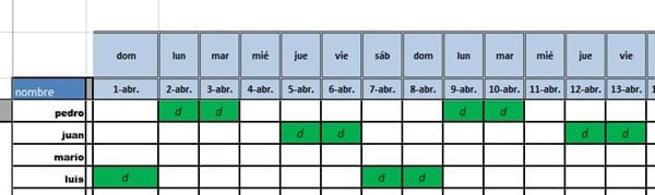 Seleccionar varios días de descanso en un calendario de un formulario y enviar a excel ejemplo: