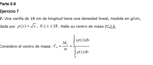 Una varilla de 18 cm de longitud tiene una densidad lineal, medida en g/cm, dada por