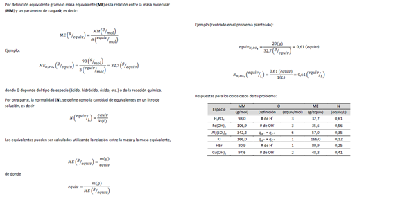 2.- Determine la normalidad de una solución de concentración 20 g/l de: a) Ácido fosfórico. B) Hidróxido férrico. C) Sulfato de aluminio. (Utilice los resultados obtenidos en la pregunta 1)
