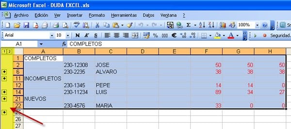 Finalmente me sume los códigos COMPLETOS – INCOMPLETOS y NUEVOS y los agrupe.