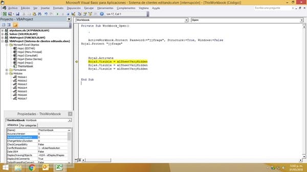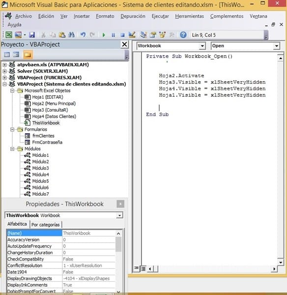 Tengo un archivo excel con varias hojas, todas ocultas solo una visible (hoja2 (Menu Principal)).