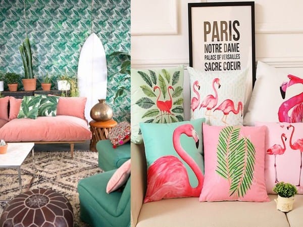 Paredes color salmón del salón, sofás en piel color chocolate, ¿qué color de cojines puedo poner?
