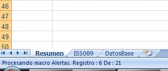 Application.StatusBar = "Procesando macro Alertas. Registro : " & i & " De : " & uf