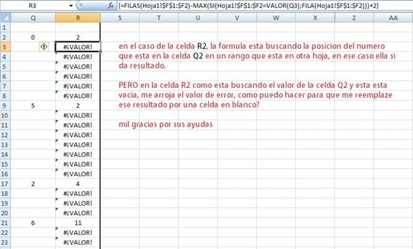 =FILAS(Hoja1!$F$1:$F2)-MAX(SI(Hoja1!$F$1:$F2=VALOR(Q3);FILA(Hoja1!$F$1:$F2)))+2