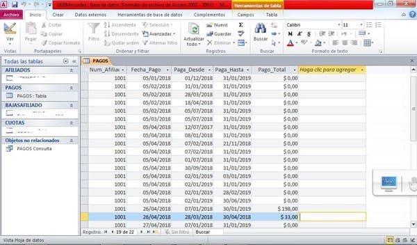 StrPagaDesdeHasta = "Select Paga_Desde,Paga_Hasta from PAGOS WHERE Num_Afiliado =" & txtBuscAfiliado.Text Set RstPagaDesdeHasta = New ADODB.Recordset RstPagaDesdeHasta. Open StrPagaDesdeHasta, Base, adOpenStatic, adLockOptimistic 'antes de guardar verificar que las nuevas fechas ingresdas no sean menores a lo que ya _ se pagó With RstPagaDesdeHasta 'Puse estos msgbox para que me muestre los campos... _ Y me muestra los campos anteriores y no los del último registro MsgBox "Paga Desde: " & !Paga_Desde MsgBox "Paga Hasta: " & !Paga_Hasta 'El PagaDesde y PagaHasta de abajo son los controles variables Date _ Que contienen el valor del DTPicker... If !Paga_Hasta <= PagaDesde Then MsgBox "Verifique la fecha de ingreso de pago. Fecha de Inicio Menor al último pago Ingresado:" & !Paga_Hasta, vbInformation, "VERIFICACIÓN FECHAS PAGO CUOTA." DtpPagaDesde.SetFocus End If If !Paga_Hasta < PagaHasta Then MsgBox "Hay pagos registrados en esa fecha. Cambie el Hasta del pago.", vbInformation, "ERROR EN MES FINAL DE PAGO." End If 'End If End With '