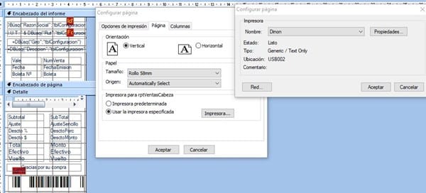 Sin embargo sigue imprimiendo en la impresora predeterminada, y al volver a abrir el informe en modo diseño, reviso la configuración y veo que no se guarda la configuración que yo le di (Tamaño de papel, margenes, impresora, etc).