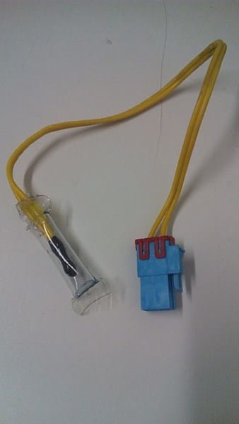 Sensor del congelador. Va entre el panel exterior que queda visto al abrir la puerta y la que cubre los serpentines, resistencias, etc: