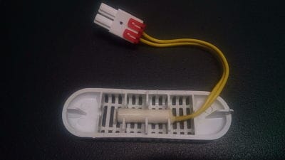 El aparato funcionando y yo cada 6/10 horas dándole al "POWER" para que siga. Dicha resistencia no la venden por separado, venderían (muy caro) todo el kit de enfriador/calentador/marco y habría que cortar + soldar + cargar el circuito del compresor. El ruso adapta una resistencia que si que venden suelta para otros modelos Samsung, lo único que hay que injertarle el cableado y conectores de la vieja a la nueva.